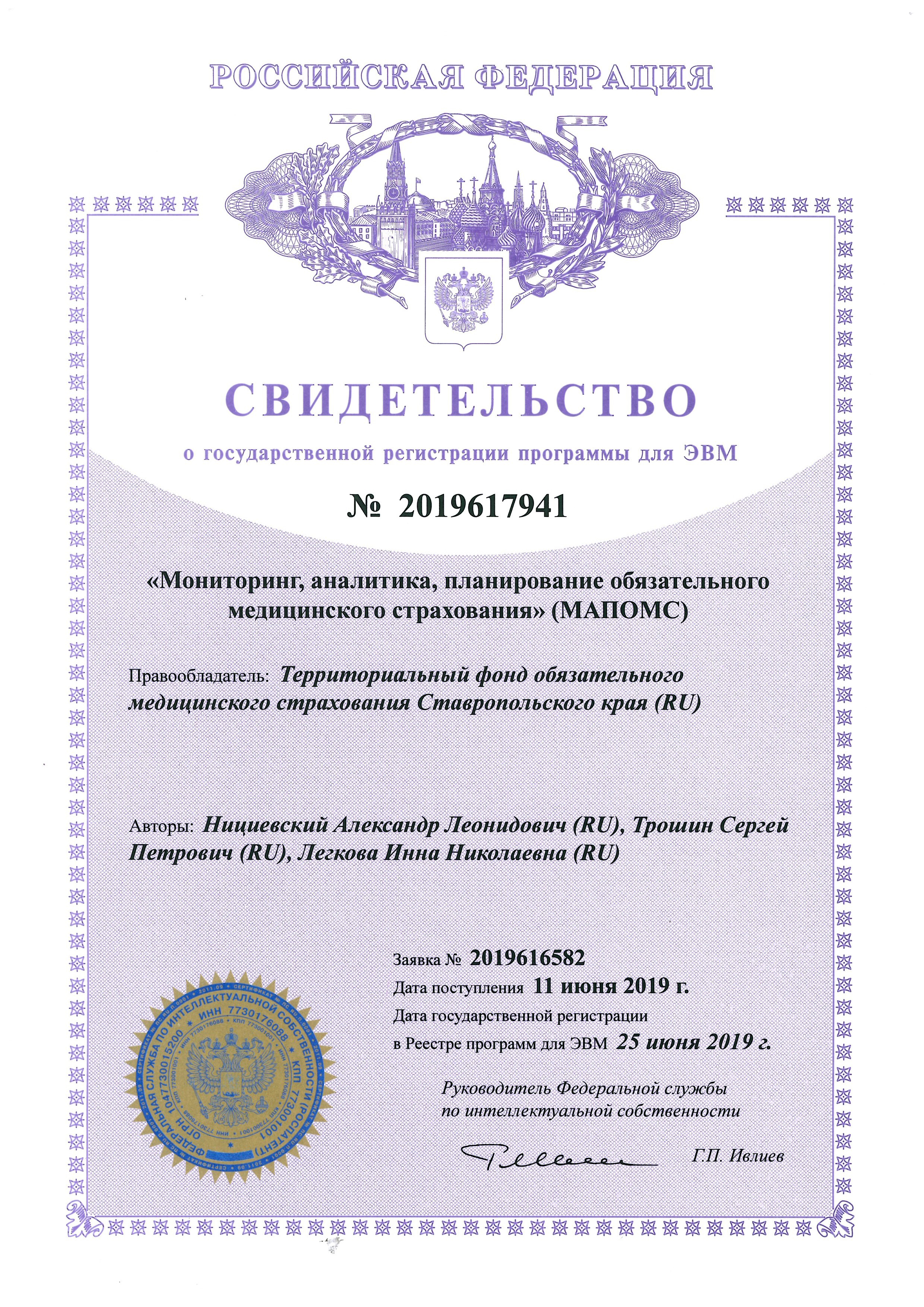 Свидетельство o государственной регистрации программы для ЭВМ