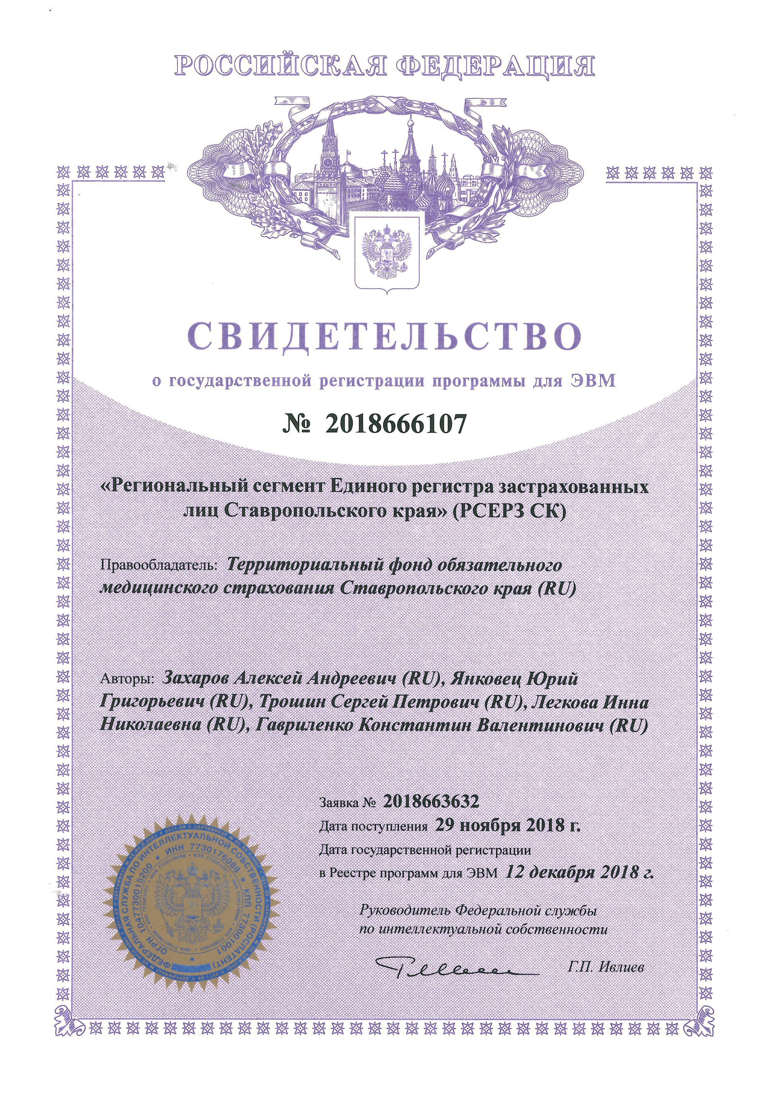 Свидетельство o государственной регистрации программы для ЭВМ